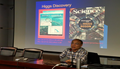 陈教授从“宇宙的演化”、“物质的形成”、“物质的结构”和“Higgs的发现”四个方面展开讲座。报告指出,宇宙是源于一次大爆炸,“哈勃红移”和“宇宙微波背景辐射”的实验数据能充分支持以上论述。其次,物质是由能量形成的,这种物质的多样性给科研工作者很多启迪。在物质结构部分,陈教授介绍到一直以来就有科研工作者试图构建“大统一理论”来着手统一四种自然力,“大统一理论”的意义在于一旦人类将四种作用力整合为一个作用力,人类就能够改变时空结构,了解宇宙万物的来龙去脉。最后陈教授谈到了物质质量的产生:质量是粒子与Higgs场”相互作用所致,这是1964年英国理论物理学家Peter Higgs等人提出了“Higgs机制”。