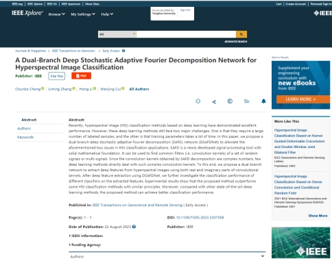 (通讯员崔文静)近日,遥感领域国际顶级期刊IEEE Transactionson Geoscience and Remote Sensing(IEEE TGRS, SCI一区, 影响因子8.2)发表了我校william英国中文“数据挖掘及建模”团队题为“A Dual-Branch Deep Stochastic Adaptive Fourier Decomposition Network for Hyperspectral Image Classification”的研究成果。williamhill英国为第一署名单位,成纯波博士为论文的第一作者。