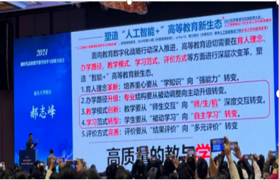 在为期三天的会议中,组委会安排了30余场报告,不仅有院士专家站在学科发展前沿提出高屋建瓴的指导性发言,也有知名高校校长对国家政策的权威解读,还有各高校在人工智能赋能大学数学课程教学实践中的成功经验交流,还有具体到某一门课程的教学改革成果探讨。与会期间,张晓燕主任就高等数学、线性代数的数学公共课改革经验与其他高校代表展开深入交流。朱云颉博士则聚焦“四新”背景下的课程改革,与兄弟院校探讨信息与计算科学专业的建设经验。胡鹏和胡传峰老师,则专注于学习人工智能在教学改革中的最新应用,并积极向与会的骨干教师代表学习。