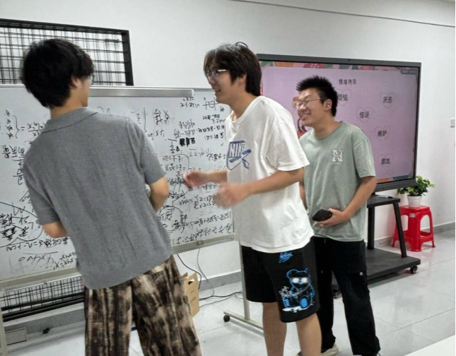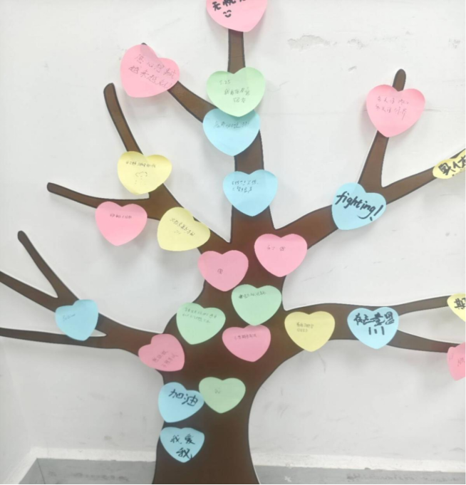 活动伊始,主持人以“5.25(我爱我)”主题为切入点,深入阐释心理健康日的核心理念,强调“安全、尊重、倾听”的团体规则,鼓励同学们敞开心扉。现场特别设置“压力释放心晴墙”,同学们拿起画笔在便利贴上涂鸦,将学业压力、生活烦恼化作生动图案,或是写下暖心鼓励话语。色彩斑斓的便利贴逐渐贴满黑板,形成一面充满温度的“心墙”,成为彼此支持的精神纽带。