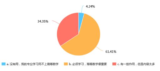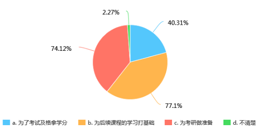 大部分的学生学习目的明确,认为学习高等数学是为后续课程学习打基础,并为考研做准备。