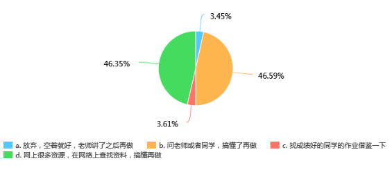 第8题 平时作业的成绩将计入总评成绩,平时作业的完成率和正确率将影响您的而最终总评成绩。您在做高等数学的作业时,如果遇到不会做的题目,怎么办? [单选题]