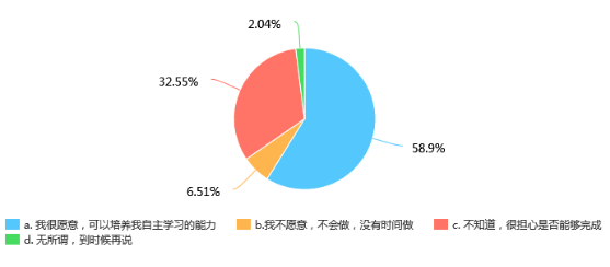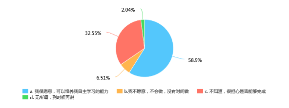 在高等数学课程教学中融入数学软件的自主学习,学院对这一举措表示欢迎,虽然有58.9%的学生表示愿意自主学习数学软件,但是仅有13.33%的学生愿意将数学软件的大型作业作为平时成绩的依据,建议首先在计算机学院、机电工程学院、电气与电子工程学院试点,根据试点情况逐步推行。