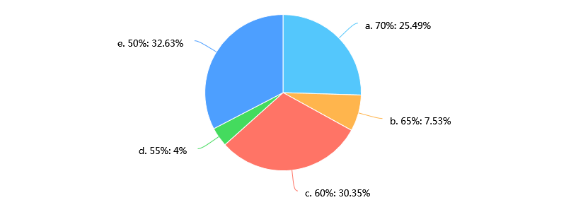 第5题 国外高等数学的期末考试成绩一般仅仅占总评成绩的50%(我校为70%)。您希望期末考试成绩占总评成绩的比例为多少? [单选题]