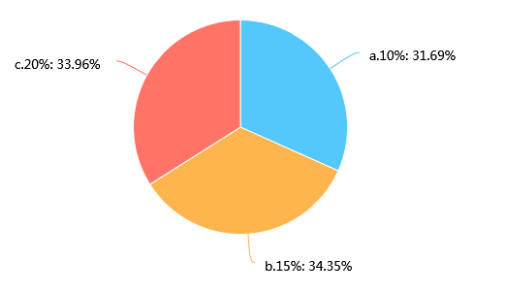 第11题 为了加强高等数学的课程教学质量的过程监控,学校将在平时进行3次测试,测试成绩将计入平时成绩。您认为平时测试成绩应该占总评成绩的多少? [单选题]