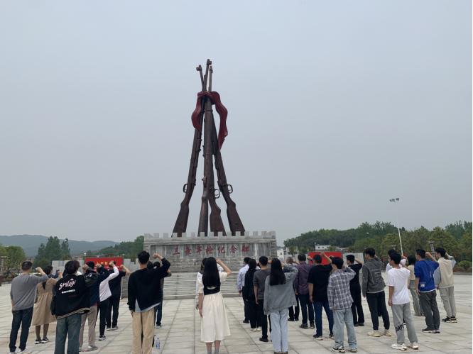 在大别山红军公园三条半枪纪念碑前,全体党员庄严宣誓,重温入党誓词。在三条半枪纪念馆和麻城家风馆内,大家通过现场教学的方式认真聆听乘马岗镇宣传干事的讲解,观看麻城不同时期的红色图片、文字资料和实物,进一步了解麻城共产党员的感人故事,深刻领悟到“敢于斗争、敢于胜利”的三条半枪精神,也更加明确作为共产党员的使命和担当,激发敢为人先的勇气和力量。