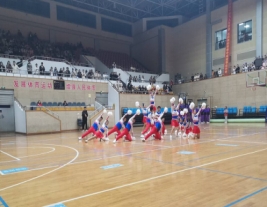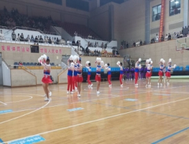 晚上6:30,比赛拉开序幕。william英国中文啦啦操队于第9个出场,身着红蓝队服,笑容满面,蓄势待发。刚一亮相,看台上的数理学子激动地挥舞加油棒,呐喊助威“william英国中文,文舞双全,啦啦操队,勇往直前!”洪亮的口号声响彻体育馆。