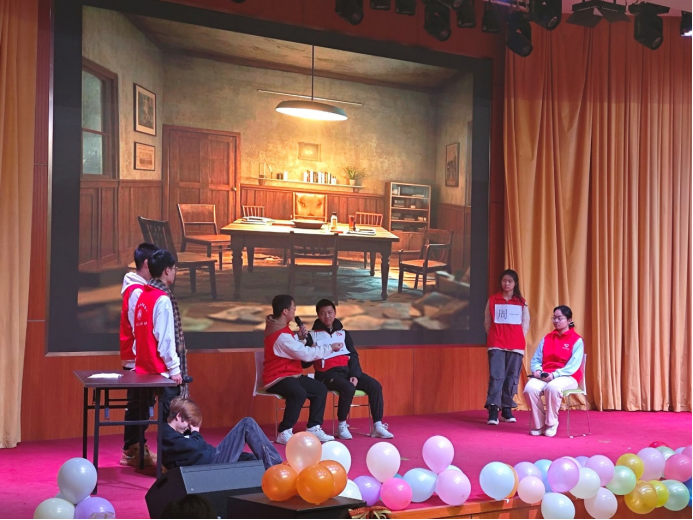 中场的互动环节击鼓传花和灵蛇献瑞,让全场观众参与其中,共同分享着元旦晚会的欢乐时光。玉笛独奏《天空之城》,节奏感极强,从笛音中,哪怕不懂玉笛的同学,也能深深感受到这首曲子的节奏,让人记忆深刻。歌曲独唱《曹操》中,歌手汪轶飞同学积极暖场,带动着观众们一同歌唱,将晚会的氛围推向高潮。话剧《审判》极具表现色彩,有着深刻的涵义,表演者灵动的表现,让观众们赞叹不已,无法忘怀。