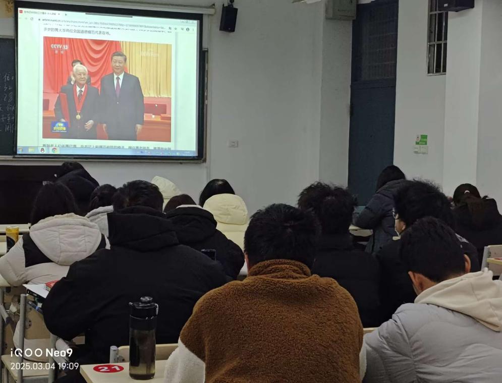 各班团支书首先带领同学们学习了《总书记与他第三次握手·令人动容》一文,向同学们介绍了黄旭华隐姓埋名三十载,为我国核潜艇事业奉献毕生精力的感人事迹。黄旭华在艰难条件下,带领团队成功研制出中国第一艘核潜艇,这一壮举标志着中国科技自主创新的崭新篇章。接着,全体学生纷纷结合自身实际,畅谈学习体会,表达着自己的学习感悟和奋斗决心,教室里洋溢着满满的正能量。