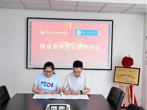 在武汉光驰教育科技股份有限公司,王老师一行受到了公司高层的热情接待。双方围绕高校光电课程的相关实验、企业对应用物理学专业人才的核心需求、高校人才培养方案的优化方向等议题展开了热烈而深入的交流。王老师详细介绍了应用物理学专业的办学特色、人才培养目标以及毕业生情况。校企双方达成重要共识,现场举行了简约而庄重的签约仪式,共同签署了《校企共建实习基地协议》。该协议的签订,标志着我校应用物理学专业在武汉光驰教育科技成功建立起一个优质的实践教学与就业对接平台,将有效提升学生的工程实践能力与职业竞争力。