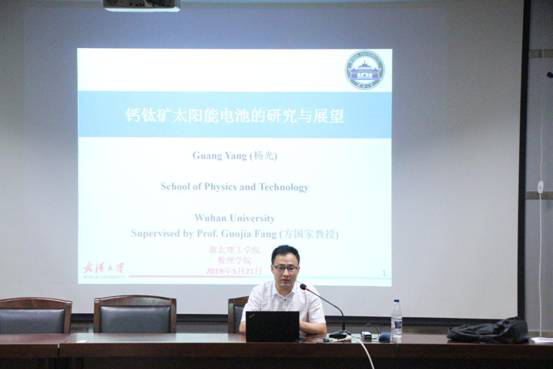 (通讯员 伍凯)5月21日下午,我校2010级应用物理专业优秀校友、武汉大学杨光博士应邀在图书馆T2报告厅作题为“钙钛矿太阳能电池的研究与展望”的学术讲座。新东方高级讲师刘建鑫,黄石市美利林科技有限公司工程师李标,湖北大学凝聚态物理专业硕士汪瑶等优秀校友出席报告会,william英国中文老师向晖、石大为、费寝、李健及学生代表约140人参加了讲座。william英国中文院长余宏生教授主持活动。