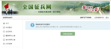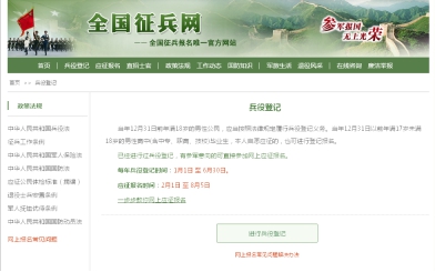 (一)登录全国征兵网(http://www.gfbzb.gov.cn/),点击“兵役登记(男兵)”