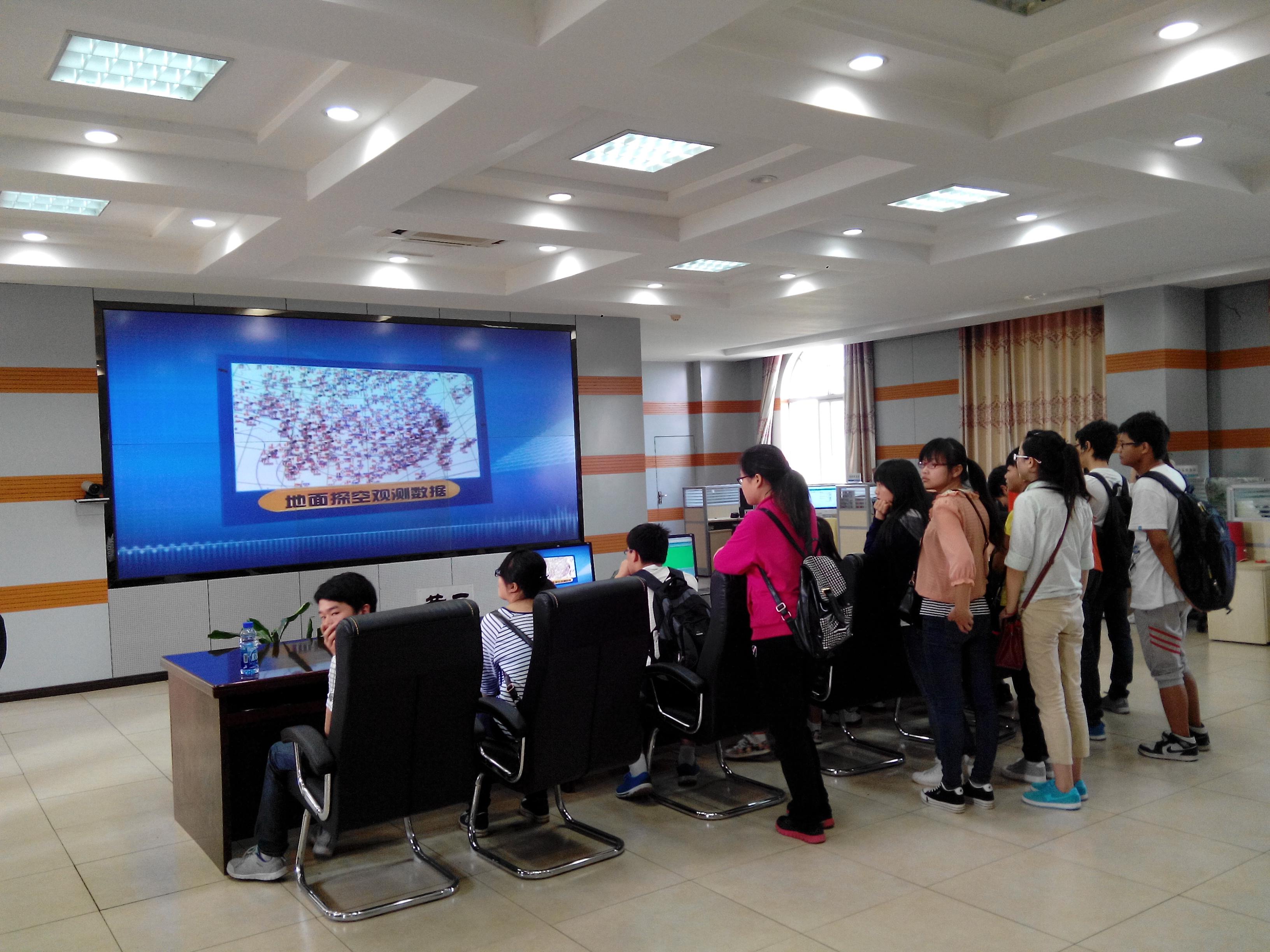 在气象台同志的指引下,首先一场关于天气预报制作流程、气象灾害常见预警分析、信息收集和图像处理等方面知识的讲座引起了同学们的好奇心,然后在气象台同志带领学生参观了有关天气信息收集的仪器。面对这些仪器,同学们表现出了对知识的渴望与热情,纷纷向相关的技术人员请教各种各样的问题。